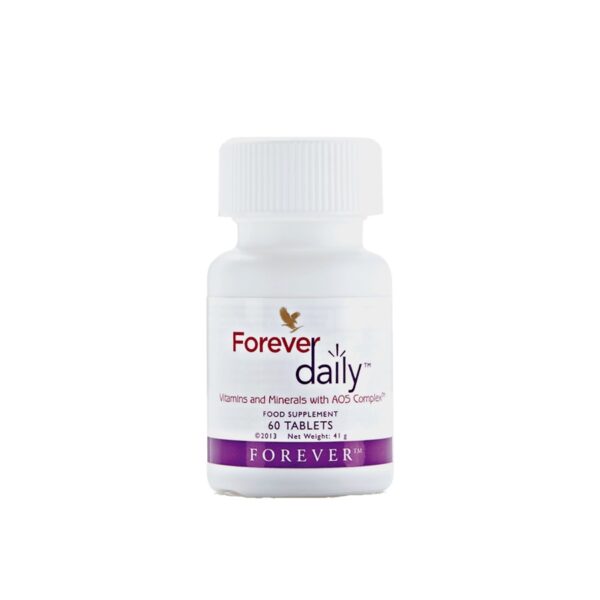 مکمل مولتی ویتامین دیلی فوراور انقلابی در مکمل های غذایی است که بر اساس ترکیبی از اولیگو ساکارید آلوئه ورا با فرمول انحصاری فوراِور (AOS) ساخته شده است. این محصول، دارای فرمولی است که مواد معدنی را به سهولت جذب بدن کرده و به سیستم های مورد نظر در بدن می رساند.